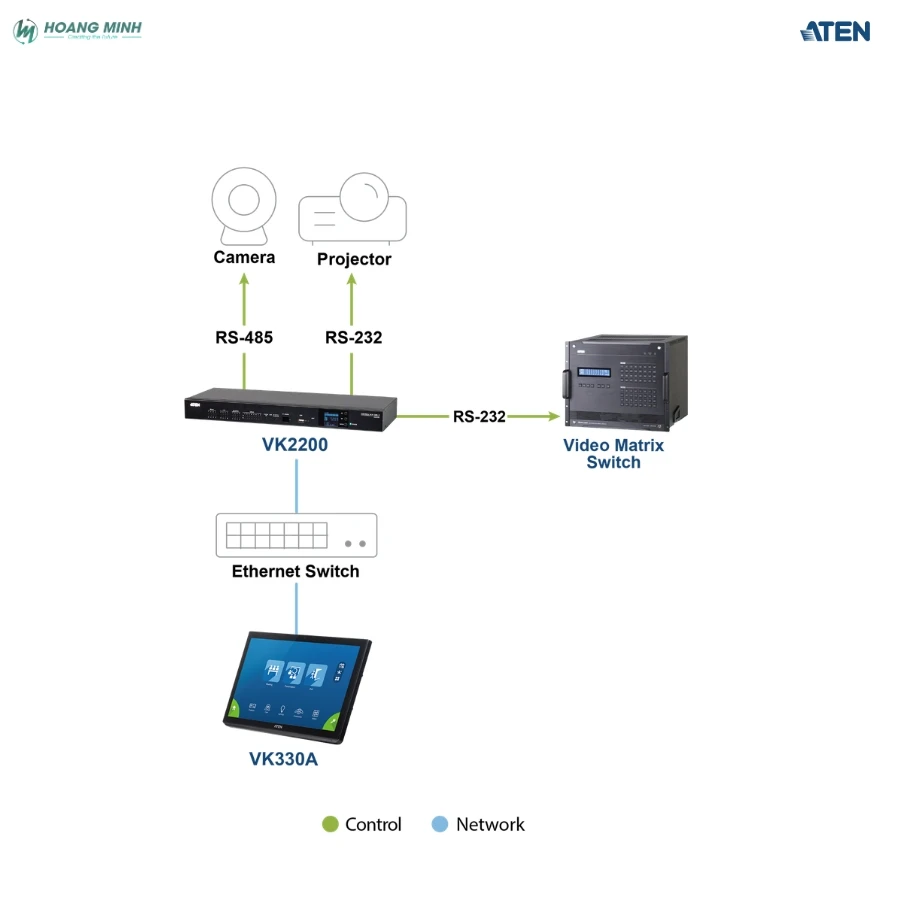 - Phòng họp thông minh, phòng hội nghị: Trong các phòng họp hiện đại, ATEN VK330A đóng vai trò là trung tâm điều khiển toàn bộ hệ thống như màn hình, máy chiếu, âm thanh, ánh sáng và thiết bị hội nghị truyền hình. Người dùng có thể khởi động cuộc họp, chuyển đổi nguồn trình chiếu hay điều chỉnh âm thanh chỉ với vài thao tác chạm, giúp buổi họp diễn ra liền mạch và chuyên nghiệp hơn.