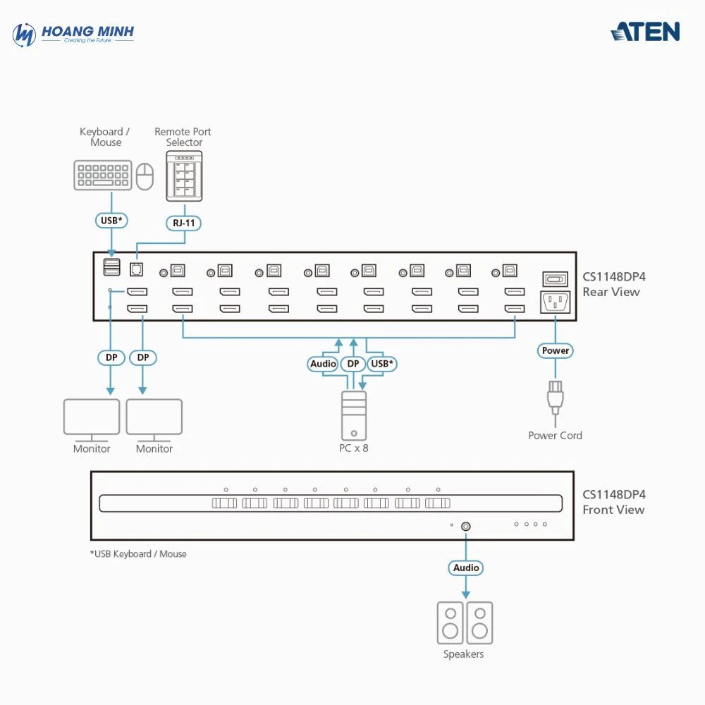 Bộ chuyển mạch KVM ATEN CS1148DP4 màn hình kép DisplayPort 8 cổng