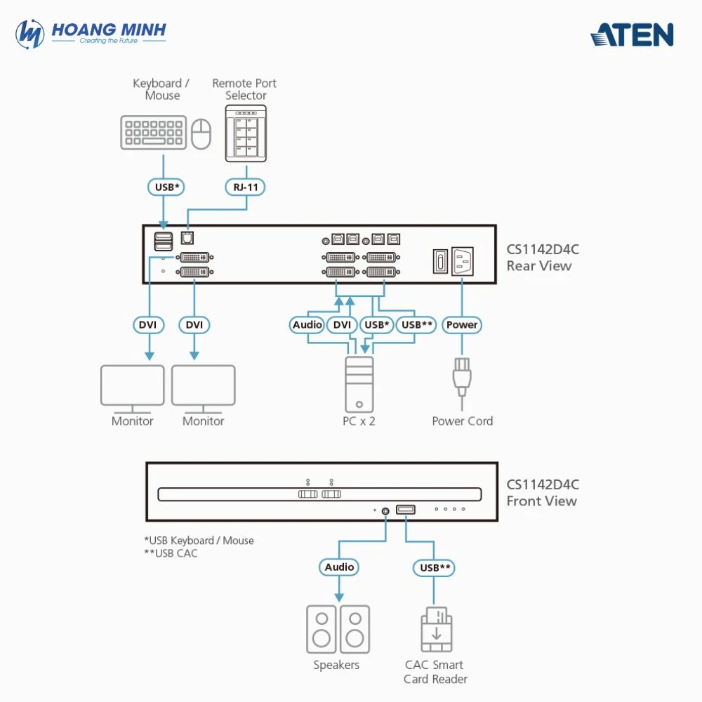 Switch KVM hiển thị kép ATEN CS1142D4C với 2 cổng USB DVI kèm CAC