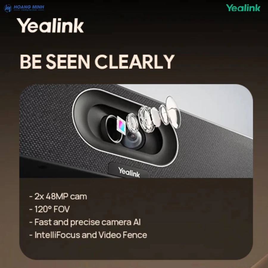 Yealink MeetingBar A40 được trang bị 2 camera 48MP với công nghệ ghép hình (stitching), mang lại: